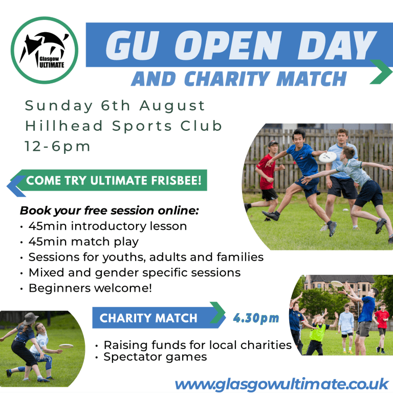 For bookings, donations and information click here: https://www.eventbrite.co.uk/e/glasgow-ultimate-open-day-and-charity-match-tickets-672999598917